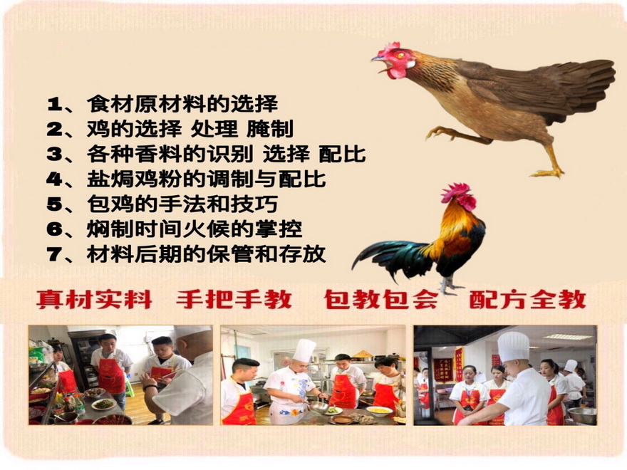 項(xiàng)目?jī)?nèi)容:鹽焗雞技術(shù)培訓(xùn)