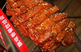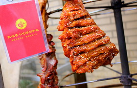 烤羊腿是呼倫貝爾招待賓客的一道佳肴名菜??狙蛲仁菑目救蜓葑兌鴣?。經過長期的發(fā)展,在羊腿烘烤過程中逐步增加了各種配料和調味品,使其形、色、味、鮮集一體,色美、肉香、外焦、內嫩、干酥不膩,被人們贊為"眼未見其物,香味已撲鼻"。