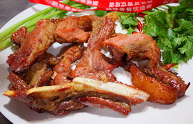 廣式燒臘是一道廣東省的名菜,它包括燒鵝乳鴿、乳豬、叉燒以及一些鹵水菜式。燒臘其實(shí)分為"燒"和"臘"兩種,但是現(xiàn)在人們總是將"燒臘"連在一起叫,都不太在乎種類了。