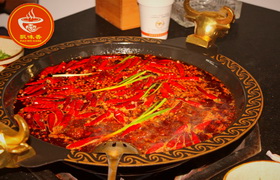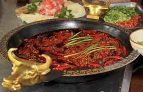 四川麻辣火鍋是四川省傳統(tǒng)名吃,源于重慶火鍋,屬于川菜系。先將牛油放入鑊中燒熱,投入花椒15克、干辣椒25克、姜、蒜爆香,然后放入四川麻辣火鍋底料炒香,倒入米酒略炒。將其馀材料同老湯放入鑊中煲磙,再煮上自己喜歡的食物用火鍋味碟佐食。此菜屬于砂鍋/火鍋,主料是牛肉、生菜、小白菜,口味是麻辣,工藝是煮,中級難度。為四川特色美食。