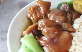 隆江豬腳飯是用豬腳、飯制作的一道主食。豬腳中含有豐富的膠原蛋白,這是一種由生物大分子組成的膠類物質(zhì),是構(gòu)成肌腱、韌帶及結(jié)締組織中最主要的蛋白質(zhì)成分,具有美容養(yǎng)顏的作用。