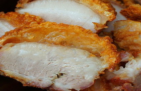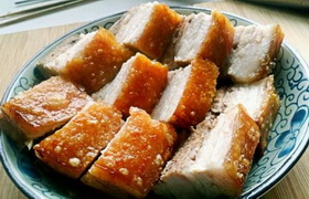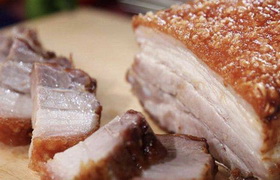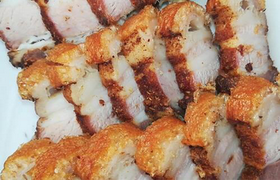 脆皮燒肉是一道色香味俱全的特色傳統(tǒng)名菜,制作原料主要有五花腩、玫瑰露等,屬于粵菜系??谖鄂r美,營養(yǎng)豐富。