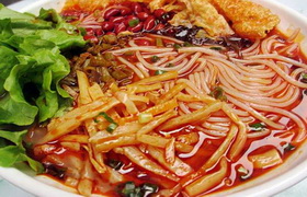 螺螄粉是廣西壯族自治區(qū)柳州市的小吃米粉,具有辣、爽、鮮、酸、燙的獨(dú)特風(fēng)味。? 是柳州最具地方特色的名小吃。螺螄粉除了鮮、酸、爽、燙,辣味也是它的獨(dú)特之處。它由柳州特有的軟韌爽口的米粉,加上酸筍、花生、油炸腐竹、黃花菜、蘿卜干、鮮嫩青菜等配料及濃郁適度的酸辣味和煮爛螺螄的湯水調(diào)合而成,因有奇特鮮美的螺螄湯,使人吃一想二。未嘗其味先觀其色便會(huì)令人垂涎欲滴,紅通通的是漂浮在上面的一層辣椒油,綠油油的是時(shí)令青菜,鮮美的螺螄湯滲透每一根粉條,螺螄粉中的辣椒油與普通的辣不同,此種帶著有侵略性的辣,嫩滑香酥得讓人忘了本位 。