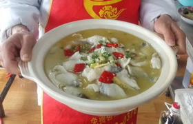 魚屬四川菜系,以其特有的調(diào)味和獨特的烹調(diào)技法而著稱。以鮮草魚為主料,配以四川泡菜煮制而成。此菜雖為四川民間家常菜,但流傳甚廣。成菜肉質(zhì)細嫩,美,微辣不膩;魚片嫩黃爽滑。酸菜魚流行于90酸菜年代初,在各地餐館都有其一席之地,重慶的廚師們又把它推向祖國的大江南北,酸菜魚是重慶菜的開始先鋒之一。