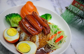 鹵肉飯是江南一帶的傳統(tǒng)名小吃,制作原料主要有豬五花肉、鵪鶉蛋、米飯等,肥而不膩、甜咸適口、香濃四溢。帶有厚重口感的鹵肉,配上一碗蒸的不軟不硬的白飯,每一粒米都吸透黑紅的湯汁。