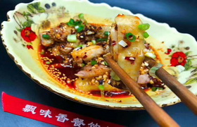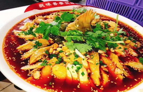 棒棒雞,又名“嘉定棒棒雞”、“樂山棒棒雞”?[1-3]??。此菜起源于樂山漢陽壩(今為眉山市青神縣漢陽鎮(zhèn)?[2-3]??,取用良種漢陽雞,經(jīng)煮熟后,用木棒將雞肉捶松后食用。棒棒雞是四川特色菜肴。屬于川菜中的涼菜,主要食材是雞肉,其味型屬于“怪味”,麻、辣、酸、甜、鮮、咸、香全部味道都具備。